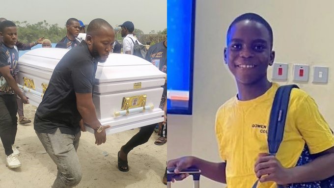 Sylvester Oromoni Jnr, a 12-year-old student at Dowen College, Lekki, Lagos State, who was reportedly subjected to torture by some senior students, was laid to rest today (Saturday), January 27, 2024.