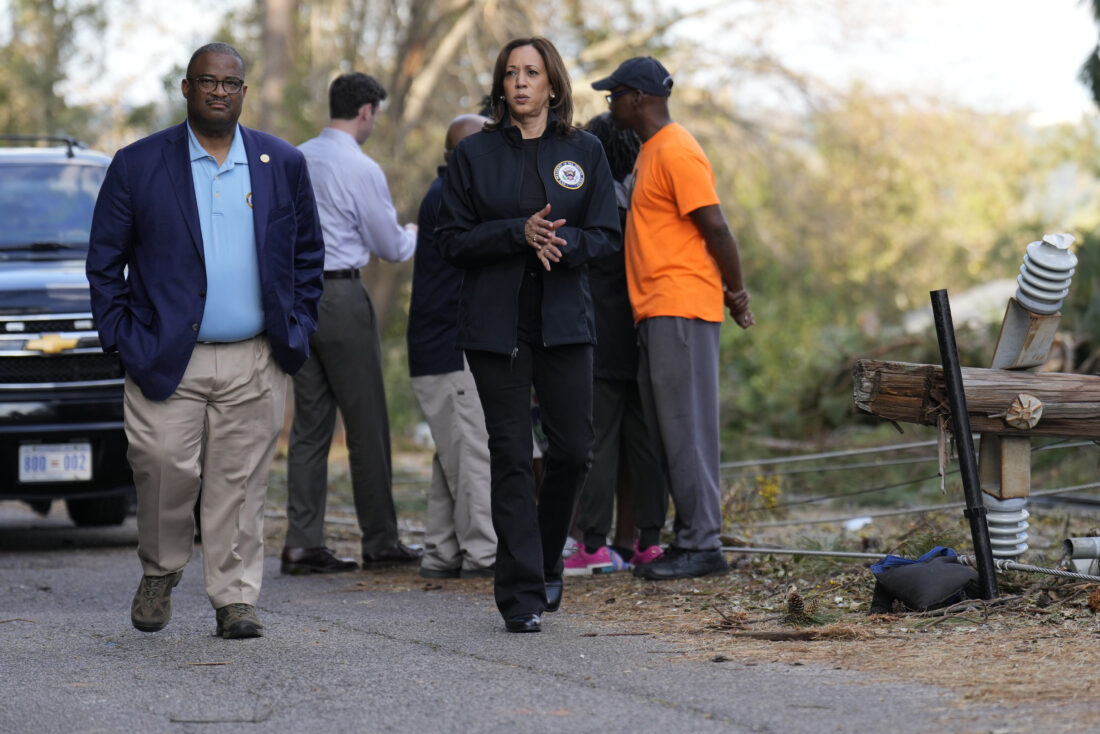 Smith said she was encouraged that Harris travelled to the town instead of just appearing on television. “She’s a person. She’s not just a voice.” About 200 miles north in the Carolinas, Biden was also surveying the storm’s aftermath. With many of the area’s roads inaccessible, he flew by helicopter over toppled trees, twisted metal and towering piles of debris in the normally tourist-friendly downtown of Asheville.