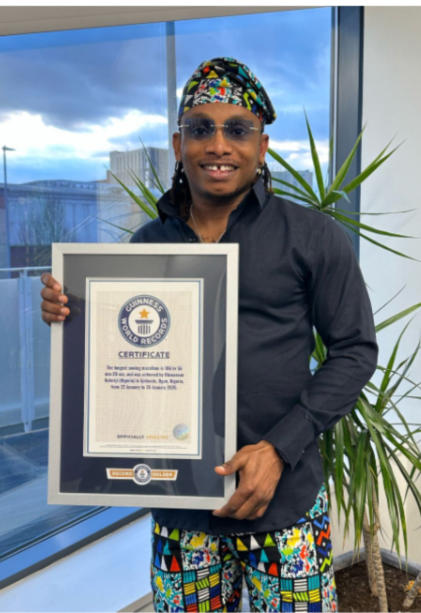 Fashion designer Kuforiji Oluwaseun, a native of Ogun State, has officially earned recognition from the Guinness World Records for setting a new world record in the longest sewing marathon.